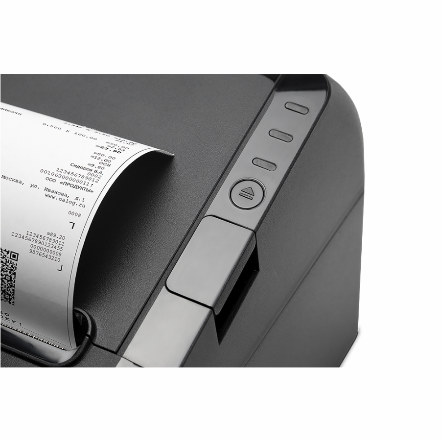Онлайн-касса оснащена популярными интерфейсами (USB, RS, Ethernet) и позволяет удаленно производить настройки, а также без подключения к ПК получать отчеты о состоянии контрольно-кассовой техники. Важным преимуществом является также быстрая генерация и печать QR кода.